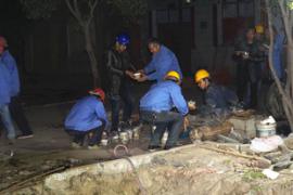 為了配合人民西路(八號路口處)市政道路建設(shè),襄陽中環(huán)公司于10月30日上午9:00開始對該段管道進行停水搶修、改造。工程公司、樊城管網(wǎng)、供水發(fā)展部等部門和單位集中力量組成70人的施工隊伍分別在4個作業(yè)點同時展開奮戰(zhàn)。為了能在48小時內(nèi)恢復供水,將停水對沿線人民群眾的生活影響降到最低,各作業(yè)班組從白天到深夜,連續(xù)施工10多個小時沒有停歇。