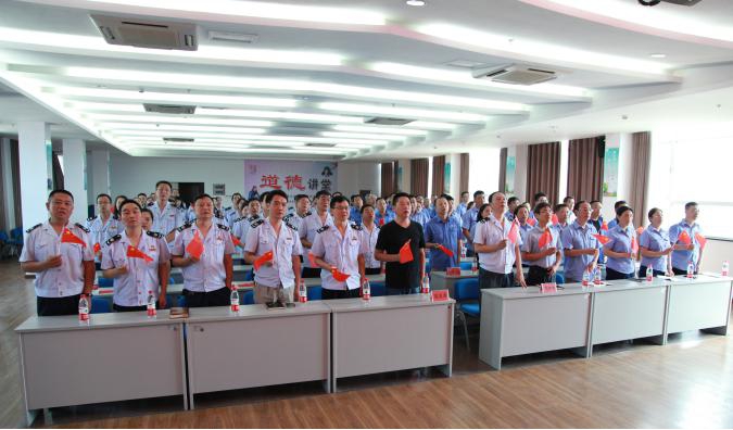 7月25日下午,根據(jù)襄陽市委宣傳部、市文明辦的要求,襄陽中環(huán)水務(wù)有限公司與樊城稅務(wù)局聯(lián)合舉辦了一期主題為“誠信敬業(yè)”的道德講堂活動。襄陽中環(huán)公司紀(jì)委書記、副總經(jīng)理焦為民;財務(wù)總監(jiān)王平;工會主席徐玲,以及公司各基層單位、機(jī)關(guān)部室代表參加了活動。