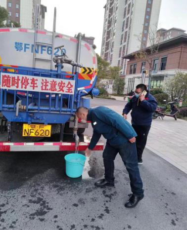 “漢江水畔小區(qū)一千多戶住戶,是否還需要安排其他同志配合?”“我一個人能行!”東所抄表班班長黨員劉凱接到任務后便立馬動身前往小區(qū),為了減少接觸,他與物業(yè)公司就怎樣通知小區(qū)業(yè)主有序下來接水進行了溝通,與司機黨員胥紅杰將送水車輛停在物業(yè)公司指定點位后,一個單元一個單元的為用戶送水,于18時順利完成送水任務,他們的暖心服務與快速行動得到了居民和小區(qū)物業(yè)的一致肯定。