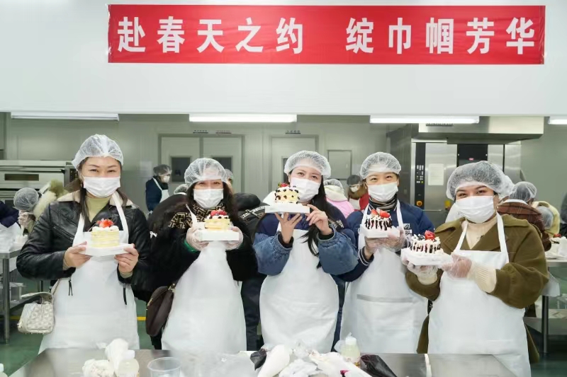 活動現(xiàn)場,在專業(yè)烘焙老師指導(dǎo)下,供水女職工瞬間化身“甜點大師”,發(fā)揮想象力和創(chuàng)造力現(xiàn)學(xué)現(xiàn)做。從做蛋糕前的準(zhǔn)備到蛋胚的擺放、奶油的涂抹、再到最后的造型裝飾,每個步驟都充滿了創(chuàng)意和樂趣,最終的成品蛋糕也各具風(fēng)格。